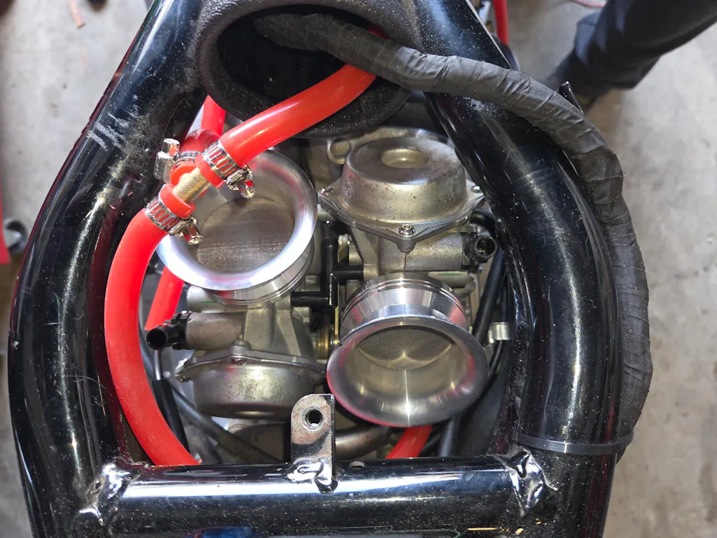 Any time a change is made to exhaust or intake, a re-jet is necessary. Sometimes this change is subtle, other times, the change is more drastic, And there is no quick one size fits all formula, so tuning does mean you may need to pull the carbs a few times. we recommend a little grease on the intake boots to ease the installation and removal of the carbs. Nobody likes chafing! Lube helps!!