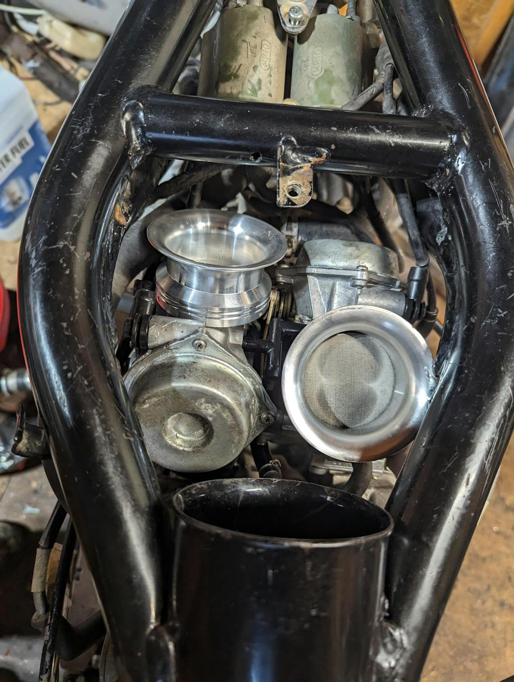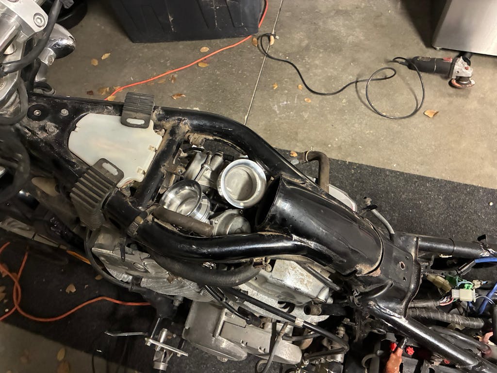If you remove the airbox components on a Honda Shadow with dual carbs, the carbs will have a hard time creating enough negative vacuum to pull in a steady flow of fuel from the pilot and main jet. The solution to this issue? Velocity Stacks! This allows the carburetors venturi to be lengthened enough so that the engine can maintain constant vacuum beyond the slide of each carb, as well as allow the air turbulence to be reduced. resulting in a much smoother delivery of air and fuel emulsification to your engine.